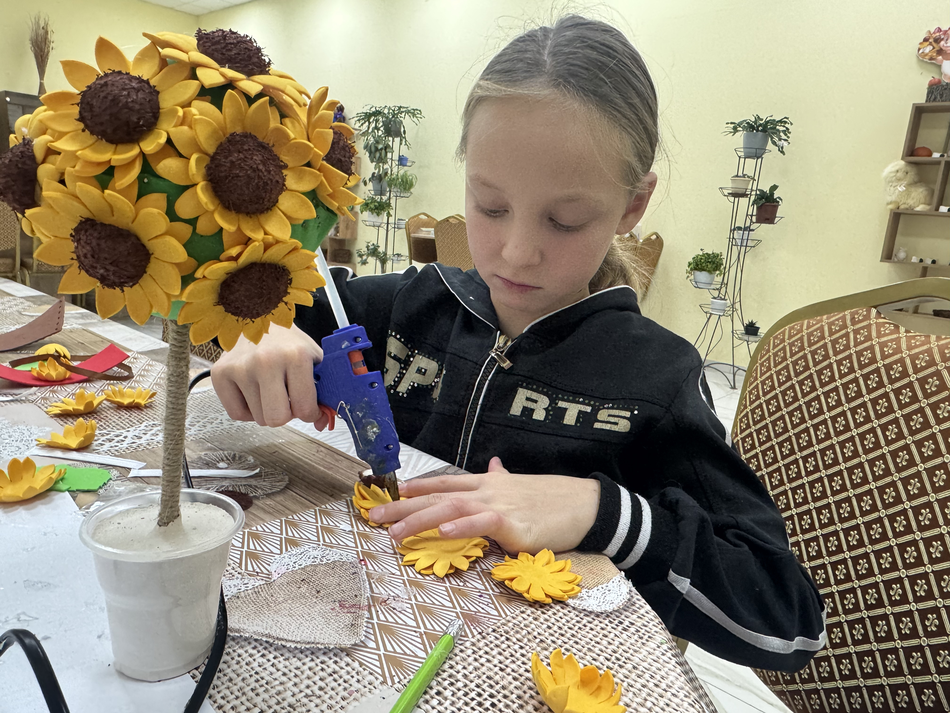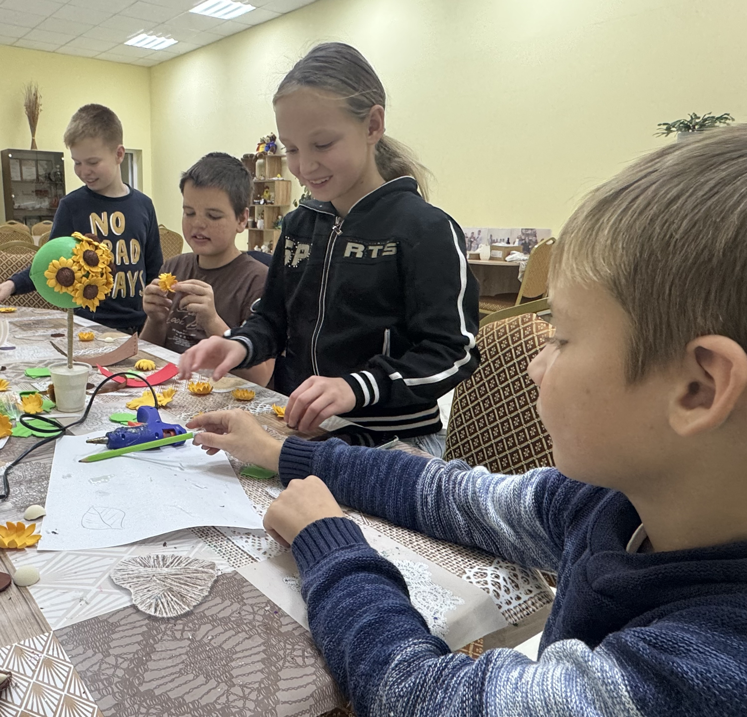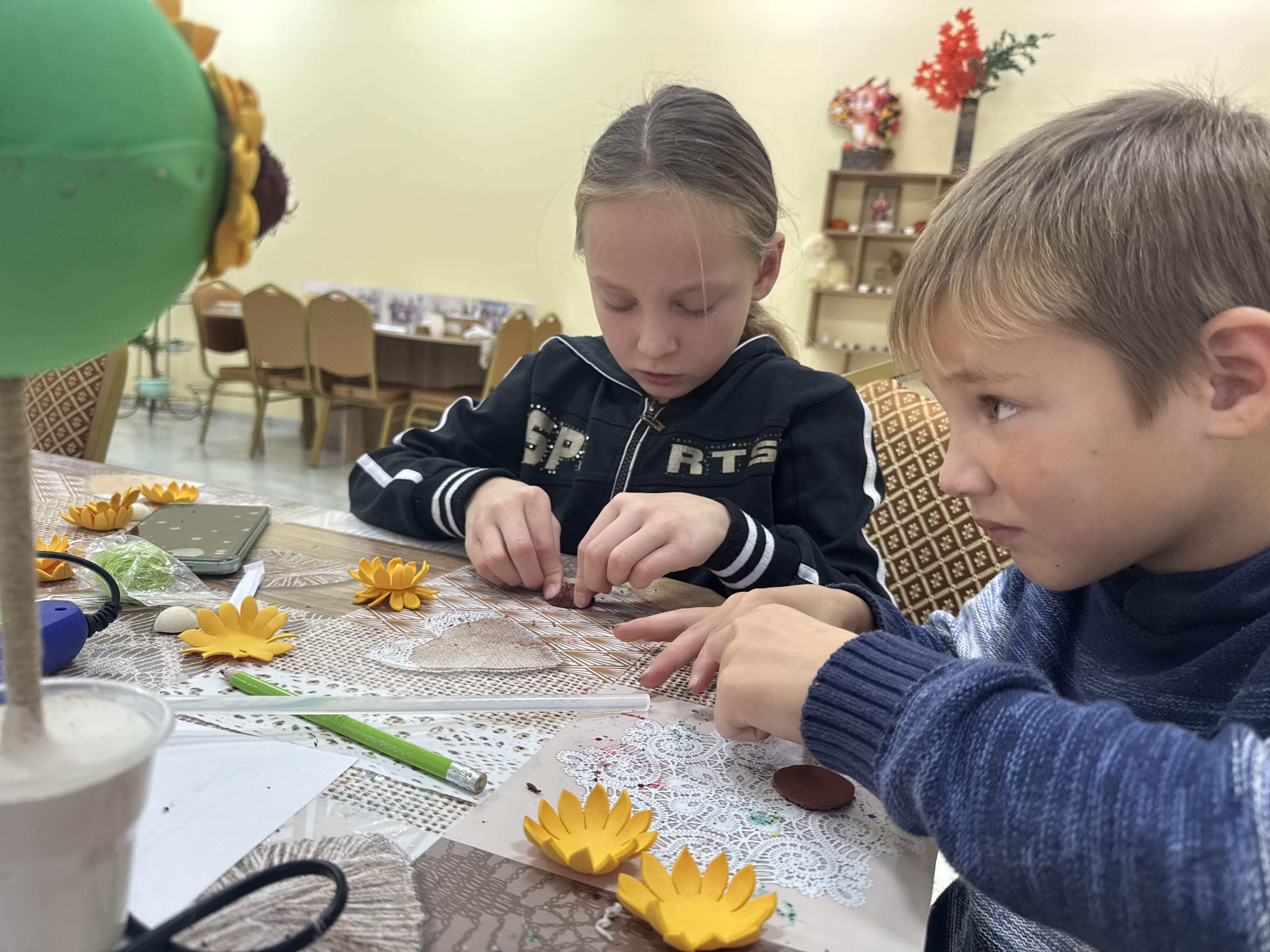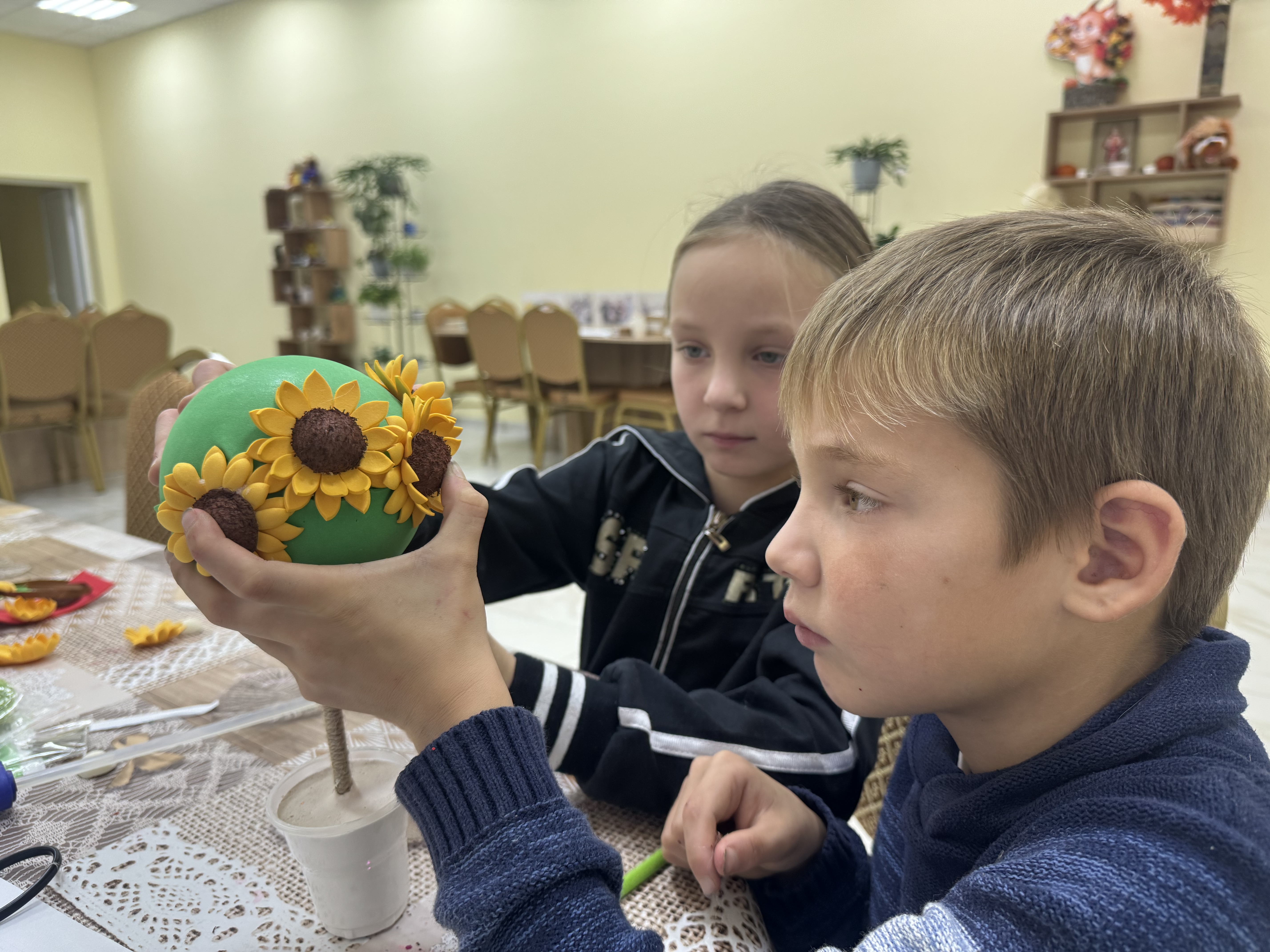 Участники мероприятия узнали, что топиарий – это поделки, представляющие собой искусственные маленькие деревья в горшках. Ребята были очень увлечены долгим, но интересным процессом превращения простых вещей в красивый шедевр.